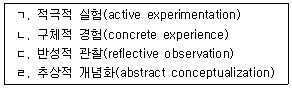 콜브(D. Kolb)가 제시한 경험학습의 진행과정을 순서대로 옳게 나열한 것은?