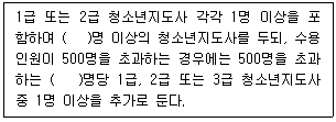 청소년 기본법령상 청소년수련관의 청소년지도사 배치기준에 관한 내용이다. ( )에 들어갈 숫자가 순서대로 옳은 것은?