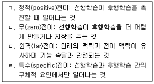 학습에서의 전이(transfer)유형에 관한 설명으로 옳은 것을 모두 고른 것은?