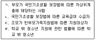 청소년복지 지원법령상 생리용품 지원을 받을 수 있는 여성청소년을 모두 고른 것은?