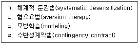 다음 중 고전적 조건형성의 원리를 응용한 상담의 기법을 모두 고른 것은?