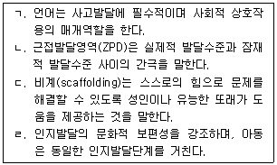 비고츠키(L. Vygotsky)의 사회문화적 인지이론에 관한 설명으로 옳은 것을 모두 고른 것은?