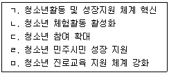 제6차 청소년정책기본계획 정책목표 중 '청소년 주도 활동 활성화'의 중점과제를 모두 고른 것은?
