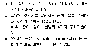 청소년 비행이론 중 중화이론(neutralization theory)에 관한 설명으로 옳은 것을 모두 고른 것은?