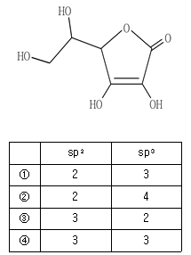 다음 분자에서 sp2 혼성 오비탈을 갖는 탄소와 sp3 혼성 오비탈을 갖는 탄소의 개수를 옳게 짝 지은 것은?