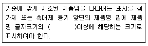 다음은 대기환경보전법규상 첨가제ㆍ촉매제 제조기준에 맞는 제품의 표시방법(기준)이다. ()안에 알맞은 것은?