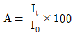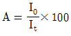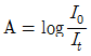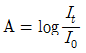 자외선/가시선 분광법에서 램버어트 비어(Lambert-Beer) 법칙에 의한 흡광도 A를 구하는 식으로 옳은 것은? (단, 입사광의 강도는 Io, 투사광의 강도는 It)