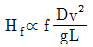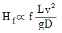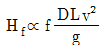 원형 덕트에서 길이 L, 마찰계수 f, 직경 D, 유속 v일 때 압력손실(Hf)의 비례관계 표현으로 옳은 것은? (단, g : 중력가속도)