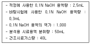배출가스 중 황산화물을 중화적정법으로 측정한 결과가 다음과 같다. 황산화물의 농도는?