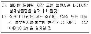 다음은 대기환경보전법규상 비산먼지의 발생을 억제하기 위한 시설의 설치 및 필요한 조치에 관한 엄격한 기준 중 “싣기와 내리기”작업 공정이다. ( )안에 알맞은 것은?