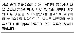 다음은 배출가스 중 황화수소 분석방법에 관한 설명이다. ( )안에 알맞은 것은?(관련 규정 개정전 문제로 여기서는 기존 정답인 2번을 누르면 정답 처리됩니다. 자세한 내용은 해설을 참고하세요.)