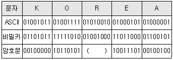 다음 문장을 비밀키를 이용하여 암호문을 만들고자 한다. 괄호안에 들어갈 암호문으로 적합한 것은 무엇인가?