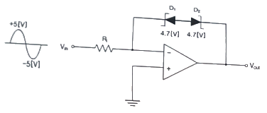 다음 회로에 대하여 입력신호 일 때 출력파형은? (단, 제너다이오드의 순방향 전압은 0.7[V]이고, 제너전압은 4.7[V]이다.)