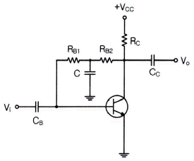 다음 그림과 같은 전압궤환 바이어스회로에서 콘덴서 'C'에 대한 설명으로 틀린 것은?