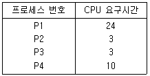 다음과 같은 상황에서 FCFS 알고리즘을 적용하였을 때 프로세스 완료 순서는?