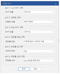 다음은 관제시스템에 등록된 카메라의 이벤트 검출 설정 중 일부의 예이다. 다음 화면과 같이 이벤트를 추가하여 설정하였을 경우 옳지 않은 것은?