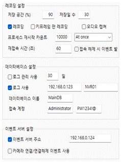 다음은 영상정보관리 서버 설정 화면 중 일부의 예이다. 다음 화면과 같이 설정하였을 경우 기능과 내용에 대한 설명으로 옳지 않은 것은?