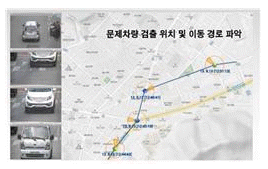 다음 그림은 문제차량이 검출되어 이동 경로가 파악되고 있는 과정이다. CCTV 촬영 방향을 표출하며 차량 이동 경로를 예측할 수 있는 CCTV 제어기능에 속하지 않는 것은?
