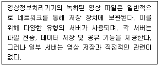 다음은 영상정보처리기기의 영상 저장 방식에 대한 설명이다. 아래에서 정의하는 조건에 적합하지 않은 서버 종류는?