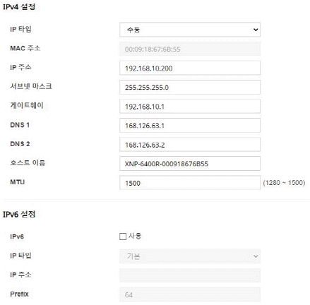 카메라는 IPv6를 사용하도록 설정되어 있다.
