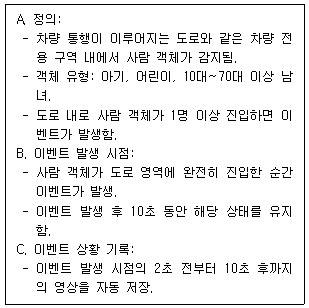 다음은 선별관제 시스템의 이벤트 발생 조건에 대한 설명이다. 아래 조건에 해당하는 이상행위 이벤트 종류는?