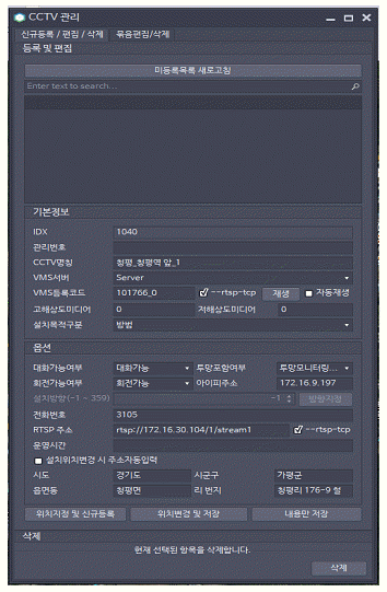 다음은 GIS에서 CCTV의 정보를 관리하는 화면이다. 화면에서 알 수 없는 정보는?