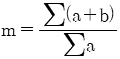 정량조직검사에서 평균입도번호(m)를 구하는 식으로 옳은 것은? (단, a:각 시야에서의 입도 번호, d:동일 입도번호를 표시하는 시야수이다.)