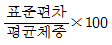 브로일러 종계의 체중조절을 위해서는 계군 평균체중 조사를 2주령부터 초산 시까지 매주 실시해야 하는데, 계군의 평균체중의 균일성을 알기 위해 사용하는 방법 중 변이계수를 구하는 식은?