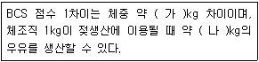 가축의 신체충실지수(BCS : body condition score)에 관한 내용으로 (가), (나)에 알맞은 숫자는?