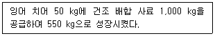 다음 양식 사례에서 사료 계수와 사료 효율을 순서대로 옳게 나열한 것은?