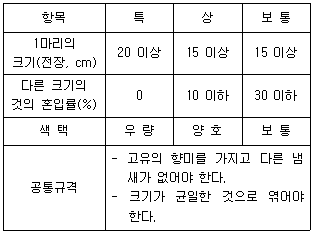 수산물 표준규격상 수산물의 종류별 등급 및 포장규격에서 다음의 등급규격에 해당하는 것은?