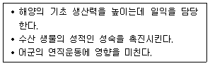 다음에서 설명하는 어장의 물리적 환경요인은?