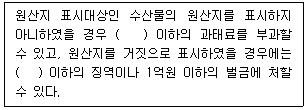 농수산물의 원산지 표시 등에 관한 법률상 벌칙 및 과태료에 관한 내용이다. ( )에 들어갈 내용을 순서대로 옳게 나열한 것은? (단, 가중이나 감경사유는 고려하지 않음)