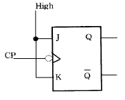 JK Flip-Flop에서 J=K=High 일 때 CP가 인가되면 Q는?