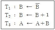 다음과 같이 세 개의 마이크로 동작(micro operation)이 이루어졌을 경우에 이 동작이 끝났을 때 A 레지스터 상태는?