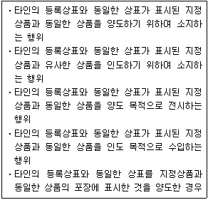 다음 중 상표법 제89조(상표권의 효력)에 규정된 상표권자의 독점할 권리의 범위를 침해하는 것은 모두 몇 개인가? (단, 다음의 행위들은 정당한 권원이 없는 것으로 간주함)