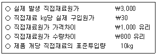 (주)한국은 표준원가계산을 적용하고 있으며, 20×1년 직접재료원가와 관련된 자료는 다음과 같다. (주)한국의 실제 제품 생산량은?