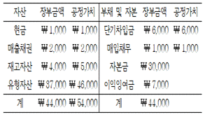 (주)한국은 20×1년 1월 1일 (주)대한의 지분 100%를 취득하여 흡수합병하면서, (주)대한의 주주에게 현금 ₩60,000을 이전대가로 지급하였다. 취득일 현재 (주)대한의 식별가능한 자산과 부채의 장부금액과 공정가치가 다음과 같을 때, (주)한국이 인식할 영업권은?
