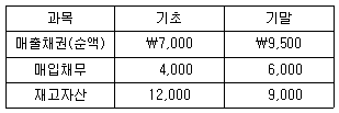 당기 현금흐름표상 고객으로부터의 현금유입액은 ₩54,000이고 공급자에 대한 현금유출액은 ₩31,000이다. 포괄손익계산서상의 매출채권손상차손이 ₩500일 때, 다음 자료를 이용하여 매출총이익을 계산하면? (단, 매출채권(순액)은 매출채권에서 손실충당금을 차감한 금액이다)