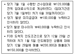 (주)한국은 당기에 다음과 같은 오류를 발견하고, 장부 마감 전에 이를 수정하였다. 오류수정 전 당기순이익이 ₩100,000이라고 할 때, 오류수정 후 당기순손익은?