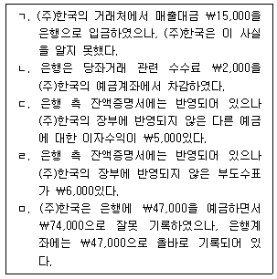 (주)한국의 20×6년 12월 31일에 당좌예금 장부상 잔액이 ₩37,500이었고, 당좌예금과 관련된 다음의 사건이 확인되었다면, (주)한국이 거래은행에서 받은 20×6년 12월 31일자 예금잔액증명서상 당좌예금 잔액은?