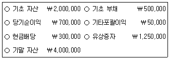(주)한국의 다음 재무자료를 이용한 기말 부채는?