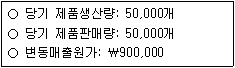 (주)한국의 다음 자료를 이용한 변동제조원가발생액은? (단, 기초제품 재고와 기초 및 기말 재공품재고는 없다)