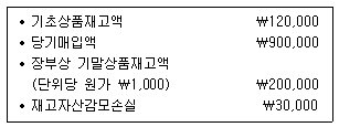 다음은 (주)한국의 재고자산 관련 자료로서 재고자산감모손실은 장부상 수량과 실지재고 수량과의 차이에 의해 발생한다. 기말상품의 실지재고 수량은?