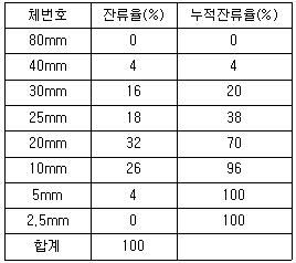 골재의 체가름 시험 결과가 다음과 같다 조립률은 얼마인가?
