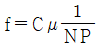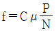 윤활유의 점성계수를 μ, 저널 베어링에 작용하는 수직 하중을 P, 축의 회전수를 N, 마찰계수를 f, 비례상수를 C라 할 때 이들 사이의 관계를 바르게 나타낸 것은?