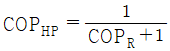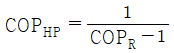 카르노 열펌프와 카르노 냉동기가 있는데, 카르노 열펌프의 고열원 온도는 카르노 냉동기의 고열원 온도와 같고, 카르노 열펌프의 저열원 온도는 카르노 냉동기의 저열원 온도와 같다. 이 때 카르노 열펌프의 성적계수(COPHP)와 카르노 냉동기의 성적계수(COPR)의 관계로 옳은 것은?