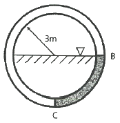 그림과 같이 안지름이 3m인 수도관에 정지된 물이 절반만큼 채워져 있다. 길이 1m의 수도관에 대하여 곡면 B-C 부분에 가해지는 합력의 크기는 약 몇 kN 인가?(문제 오류로 가답안 발표시 4번으로 발표되었지만 확정답안 발표시 모두 정답처리 되었습니다. 여기서는 가답안인 4번을 누르면 정답 처리 됩니다.)