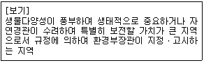 다음 중 자연환경보전법상 다음 [보기]가 설명하는 지역으로 옳은 것은?