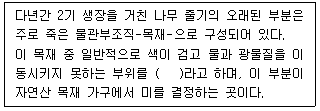 다음은 오래된 줄기의 목재에 관한 설명이다. ( )안에 가장 적합한 것은?